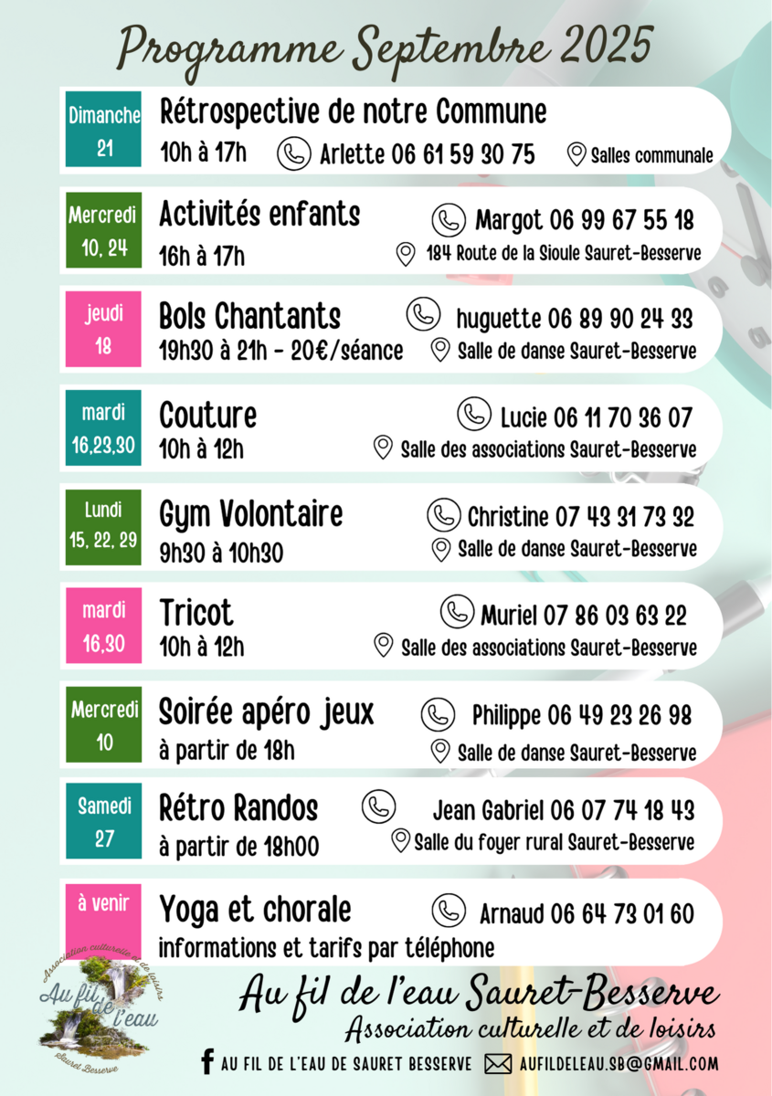 -Programme des activités de septembre