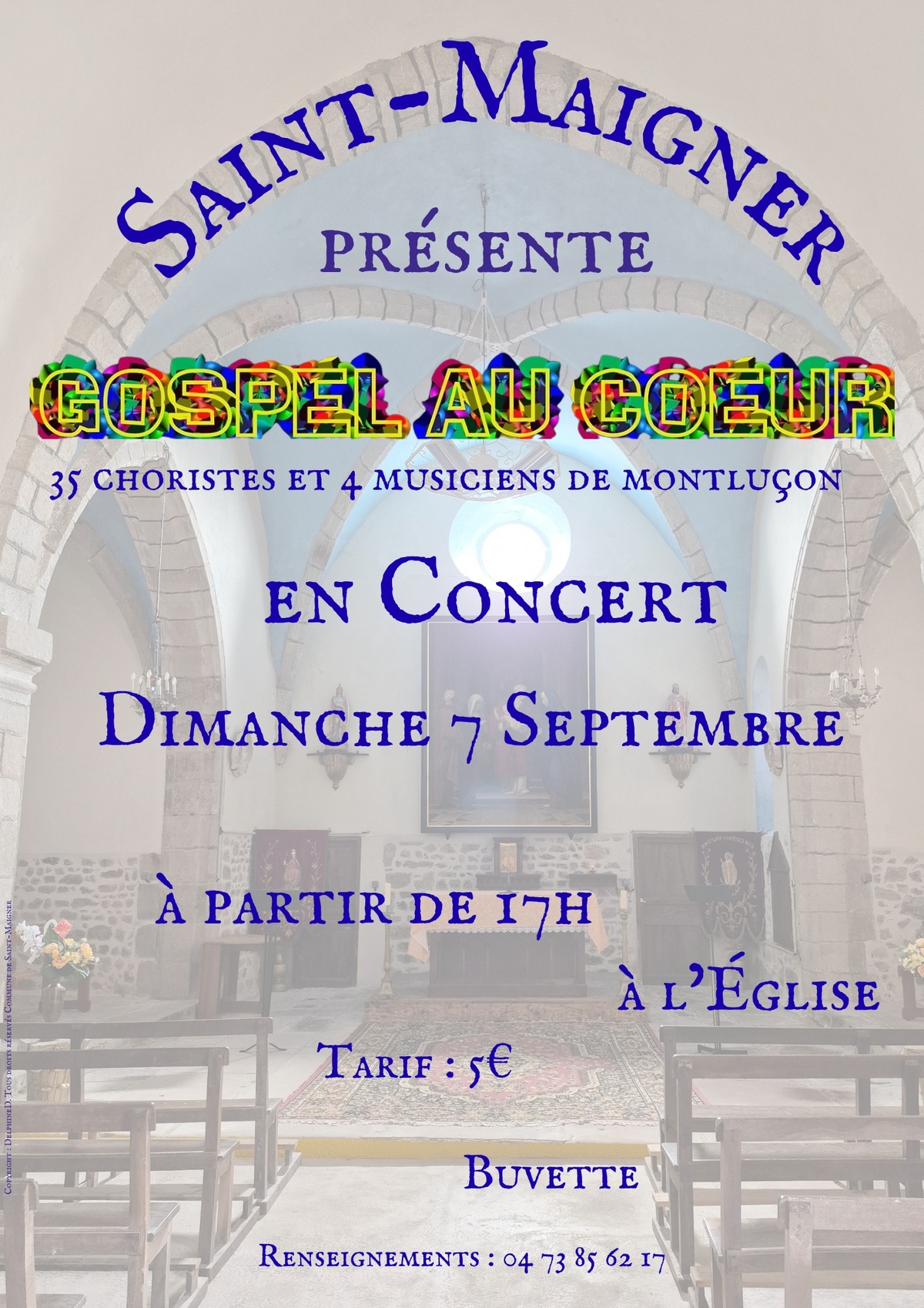 Concert Gospel à Saint-Maigner le 7 septembre 5/9/25 Source mairie de Saint-Maigner Source : Mairie de Sauret-Besserve
