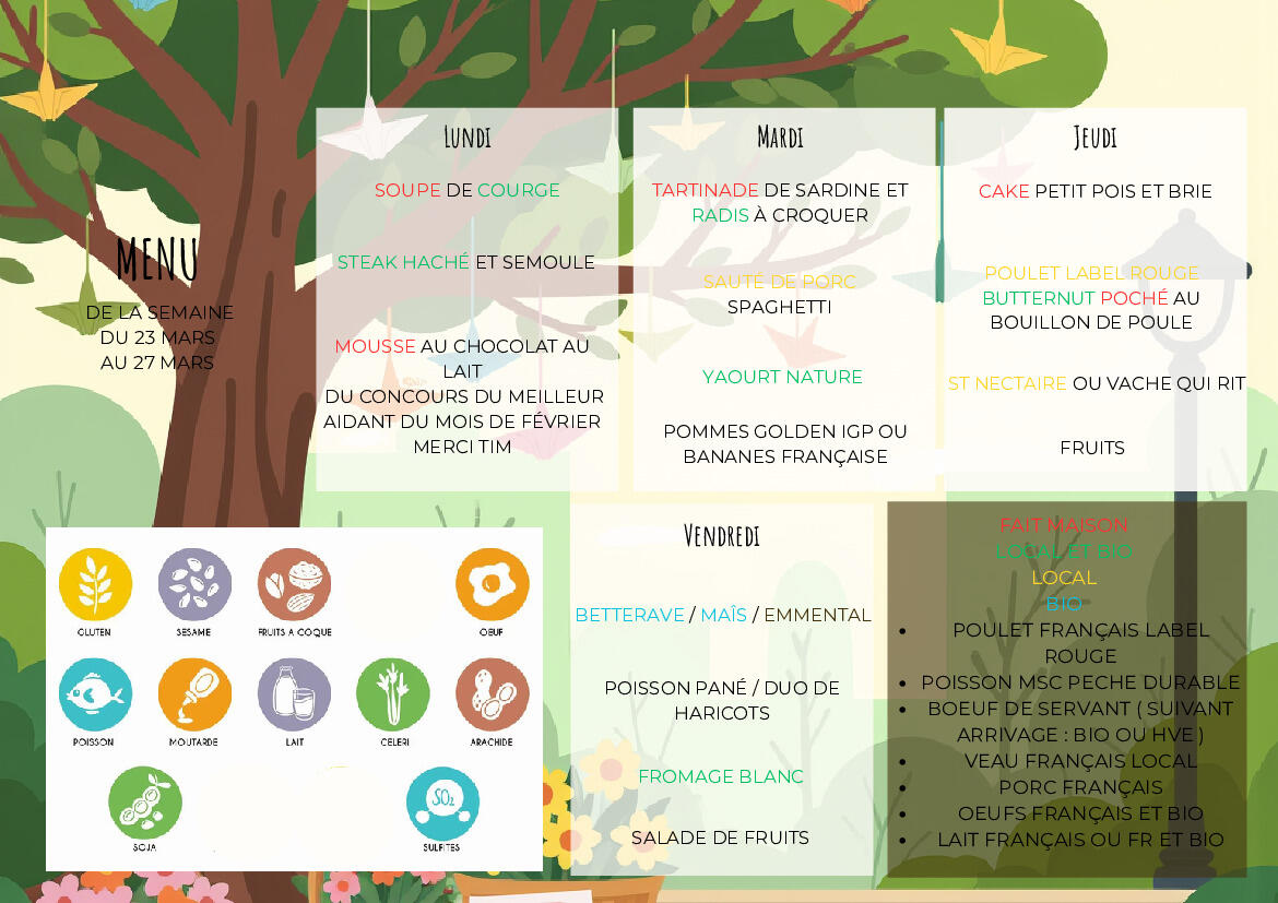 Menus du 23 au 27 mars