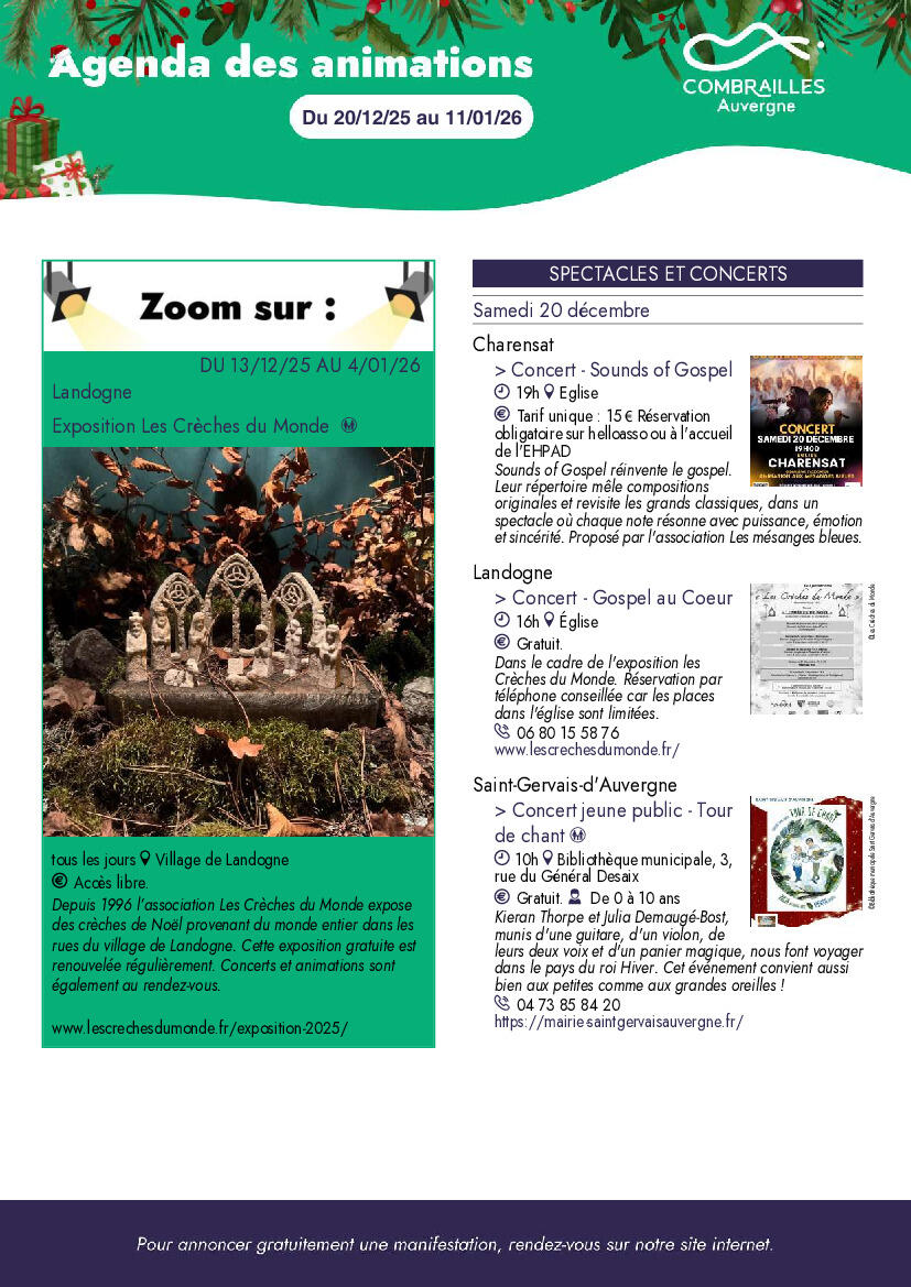 Agenda du 20 décembre 2025 au 11 janvier 2026