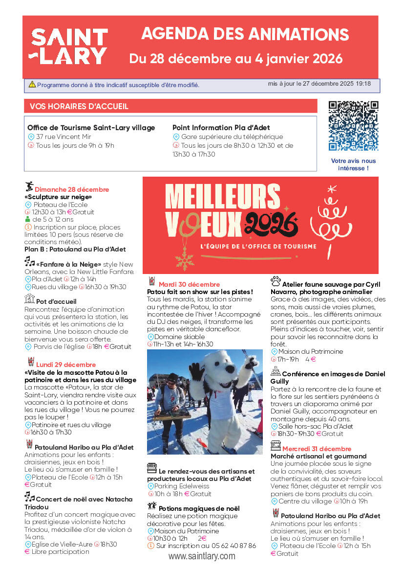 Animations du 28 décembre 2025 au 4 janvier 2026