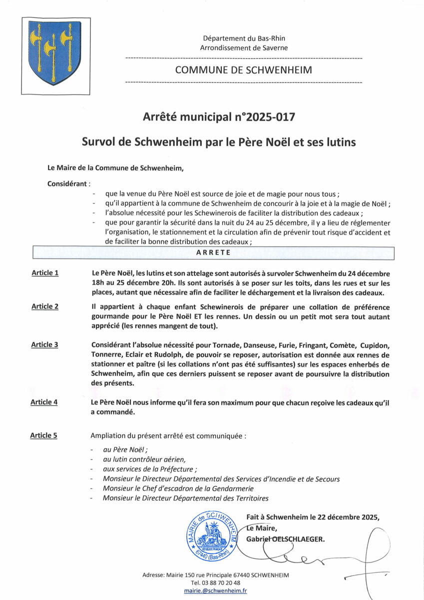 Arrêté 2025-017 : survol de Schwenheim par le Père Noël