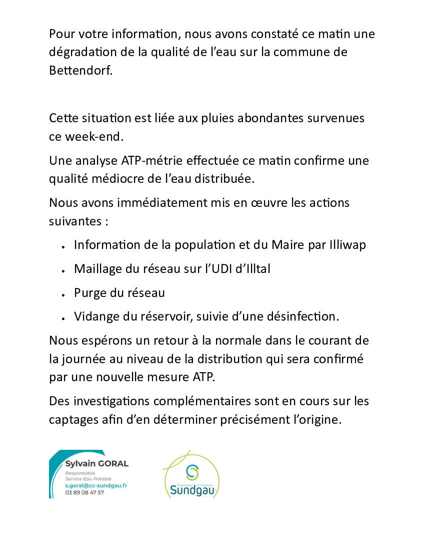 Qualité de l'eau (cf CCSundgau)