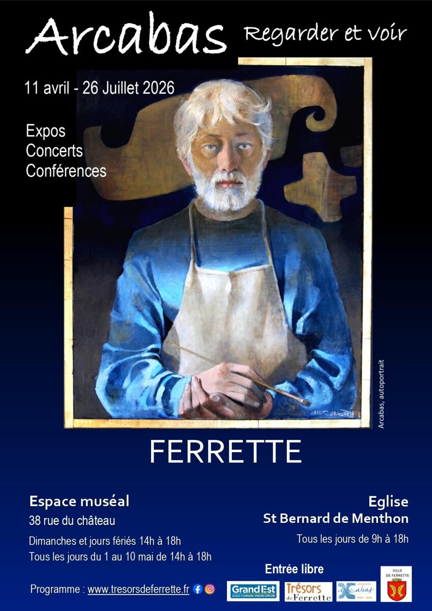 Pour les 100 ans de la naissance de Jean-Marie Pirot, plus connu sous le nom d’Arcabas, l'association « Trésors de Ferrette » (association pour la sauvegarde et la mise en valeur du patrimoine de Ferrette) vous invite à divers évènements tels que des expositions, concerts et conférences à Ferrette tout au long de l’année 2026 !