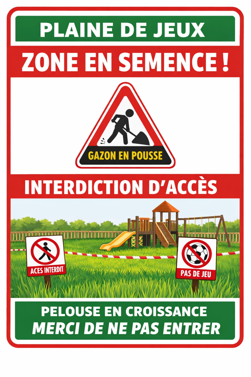 Le nouvel espace de l'aire de jeux a été ensemencé par notre paysagiste.