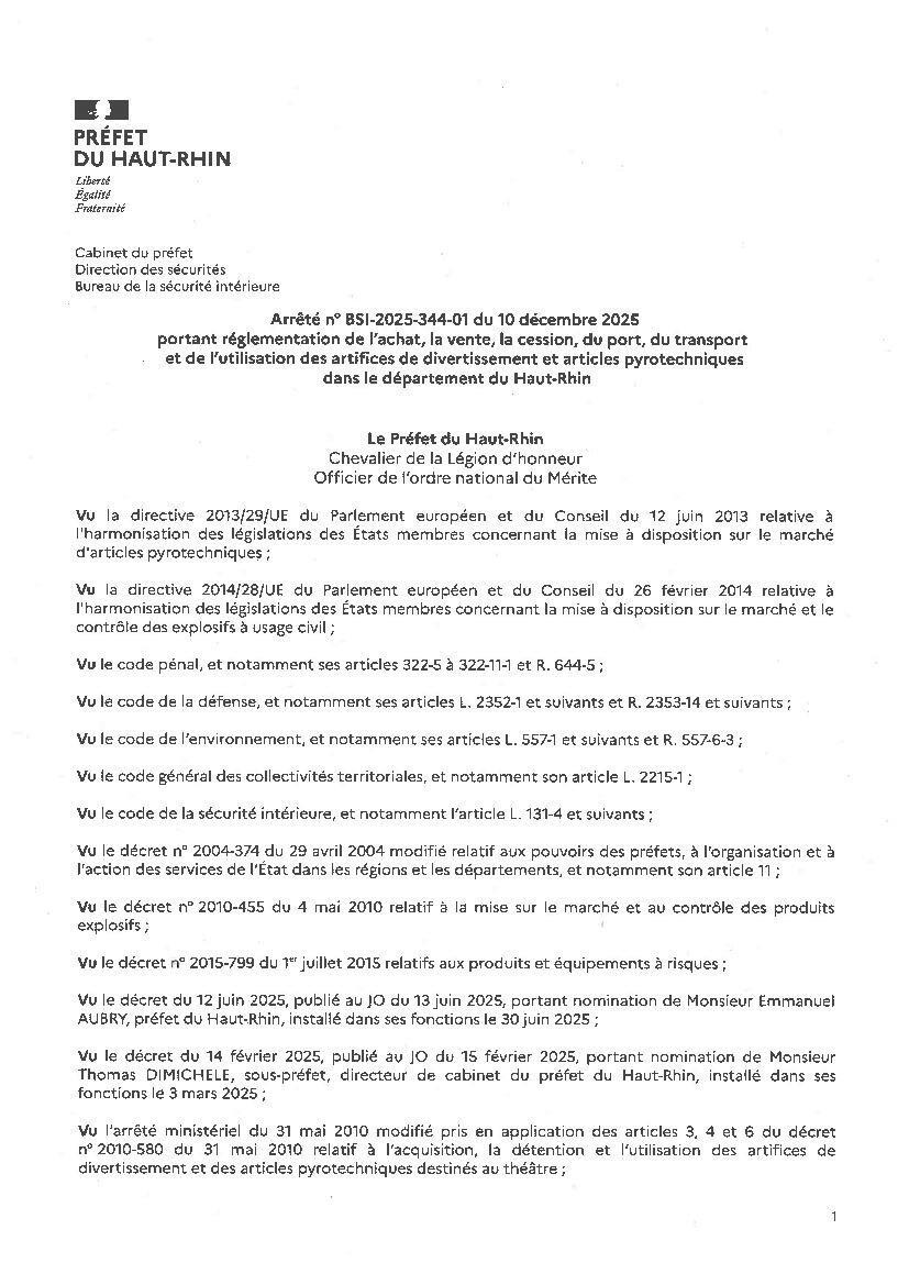Arrêté préfectoral (feux d'artifices fin d'année)