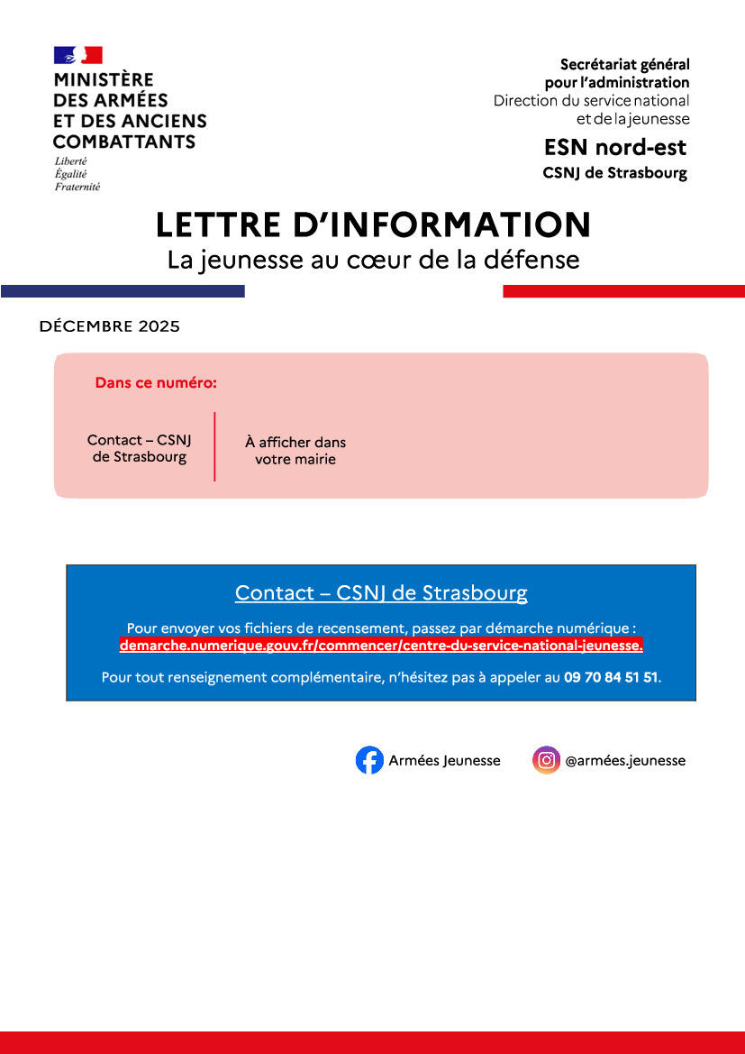 Information sur le recensement et la JDC 16/12/25 Renseignements importants sur le recensement et la Journée Défense et Citoyenneté (JDC)
