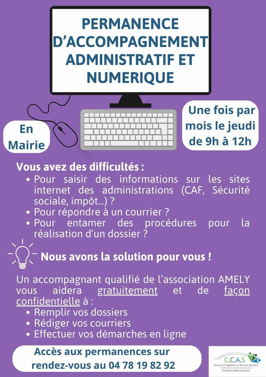 🖥 Une permanence d'accès au numérique a lieu en mairie de Charbonnières-les-Bains, un jeudi par mois, de 9h à 12h.