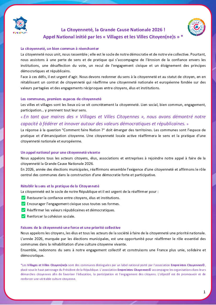 2026 : si la citoyenneté devenait la Grande Cause Nationale