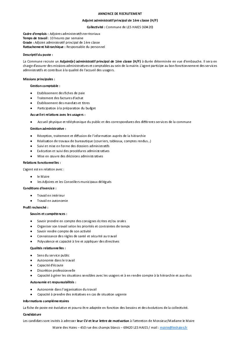 OFFRE D'EMPLOI AUX HAIES