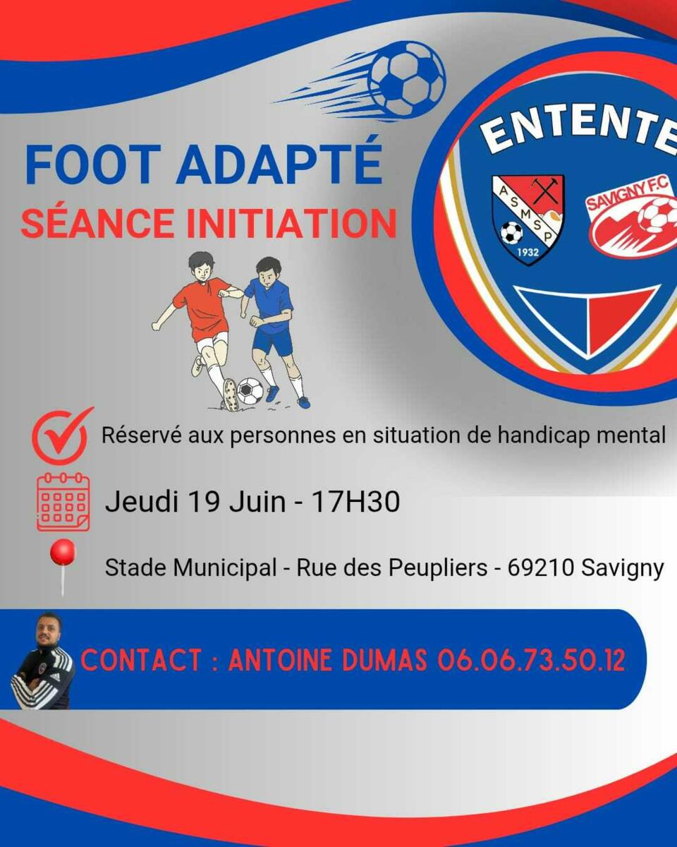 l'entente sportive foot Savigny St Pierre propose une séance d'initiation aux personnes en situation d'handicap mental le jeudi 19 juin à 17h30