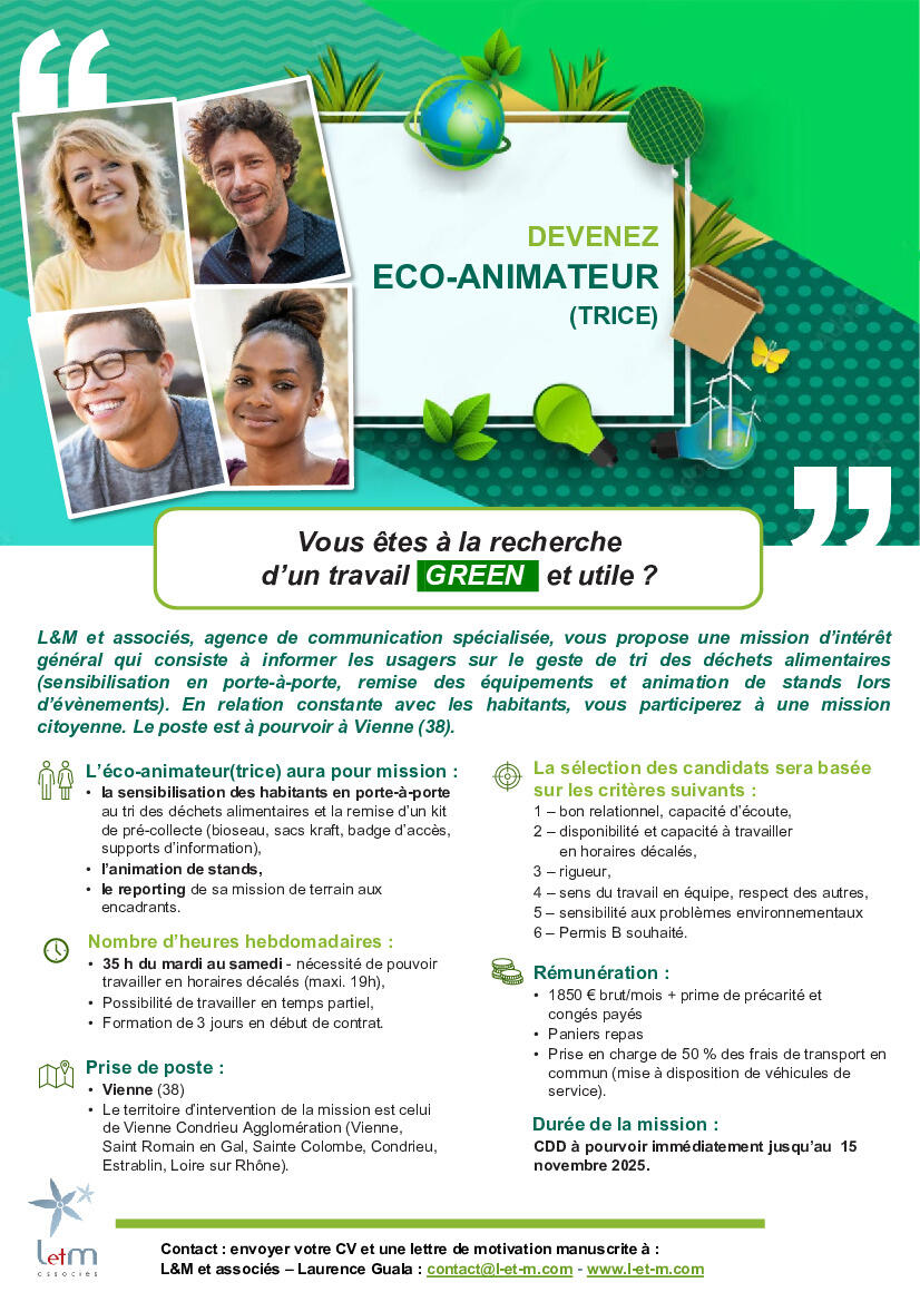 Devenez Eco-animateur au sein de l'agglo 6/10/25 Poste CDD à pourvoir immédiatement jusqu’au 15 novembre 2025