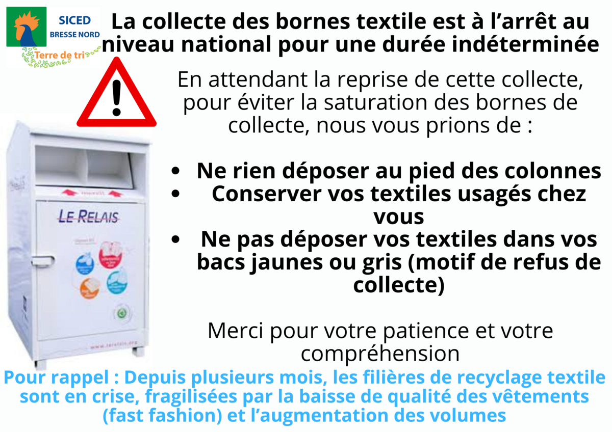 URGENT ! La collecte des bornes textile 18/7/25 Le Relais est en grève suite au blocage des financements par l’éco-organisme Refashion.