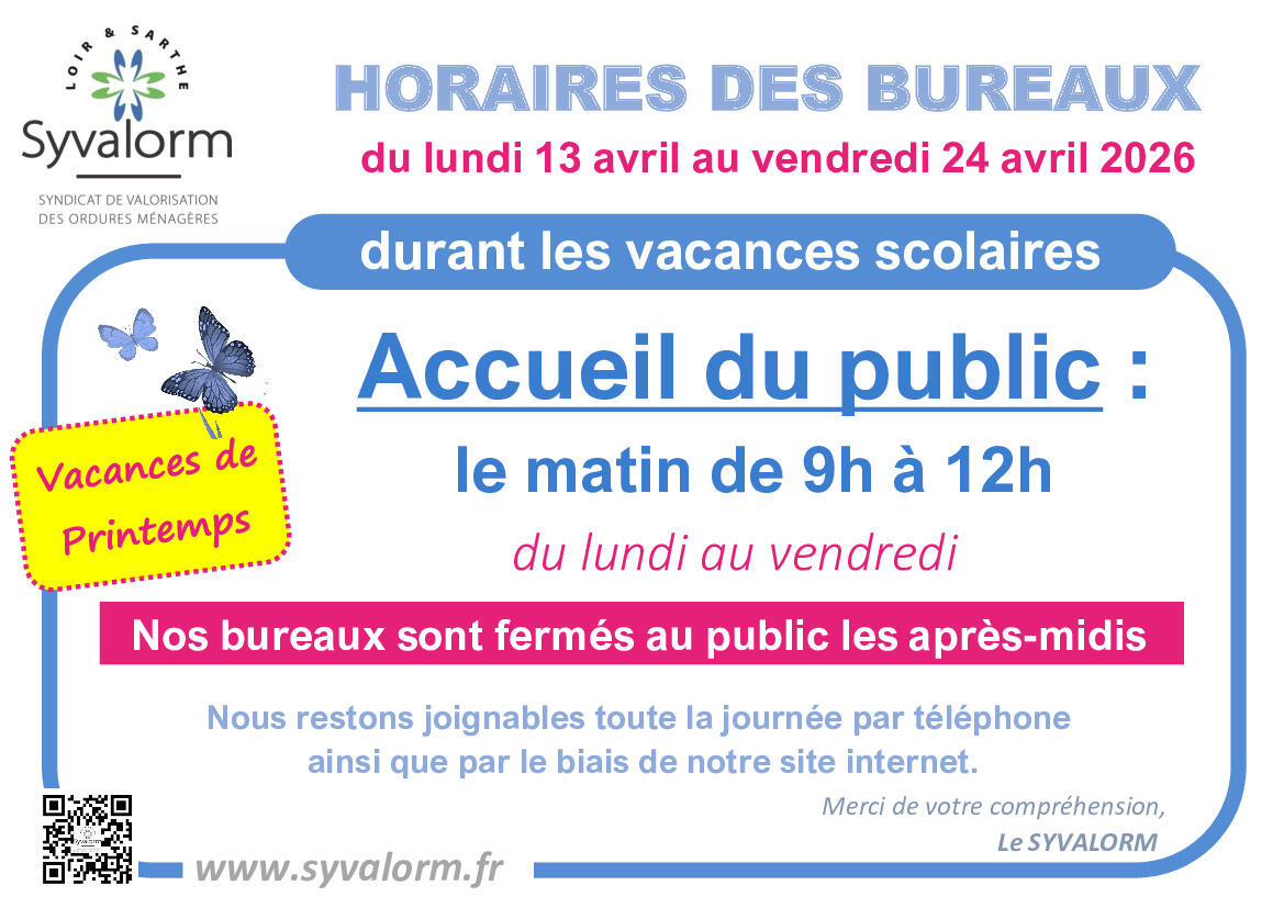 - Les bureaux SYVALORM sont fermés au public tous les après-midis.