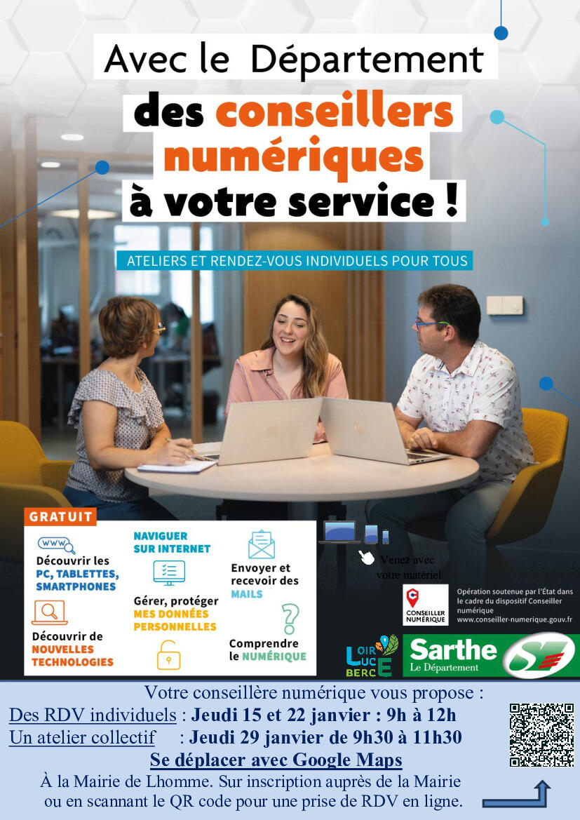Le prochain atelier collectif à Lhomme sera en janvier, le 29/01/2026, et vous pourrez apprendre à vous déplacer avec Google Maps.