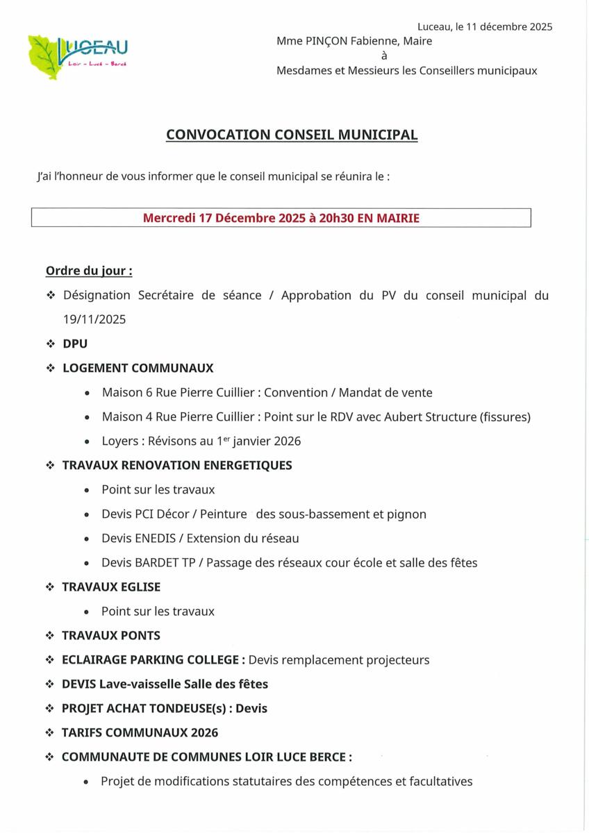 Conseil muncipal 19/12/2025