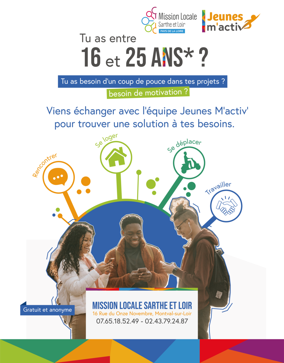 👉 L’équipe Jeunes M’activ’ de la Mission Locale Sarthe et Loir est là pour t’accompagner gratuitement et anonymement.
