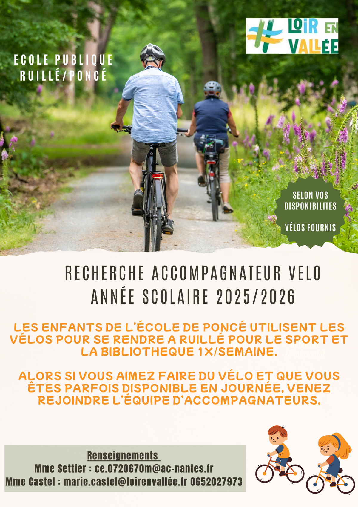 ECOLE RECHERCHE ACCOMPAGNATEUR TRAJET VELO