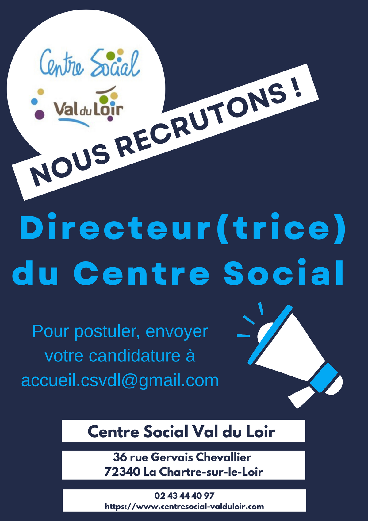 On recrute au Centre Social Val du Loir ! 10/4/25 FICHE DE POSTE : https://emploi.centres-sociaux.fr/emploi/direction/