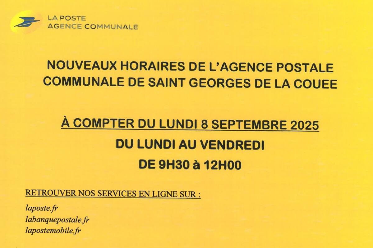 Nouveaux horaires de l'agence postale communale