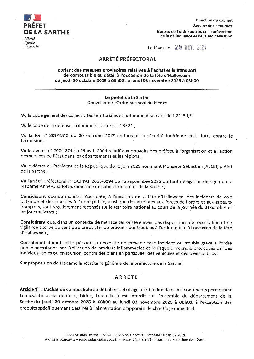 ARRÊTÉ PRÉFECTORAL : UTILISATION ARTIFICES ET COMBUSTIBLES
