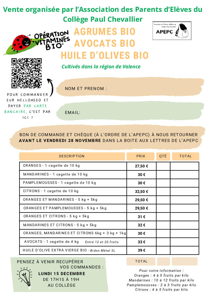 Commande possible via le lien https://www.helloasso.com/associations/apepc-72/boutiques/agrumes-avocats-et-huile-d-olives-bio