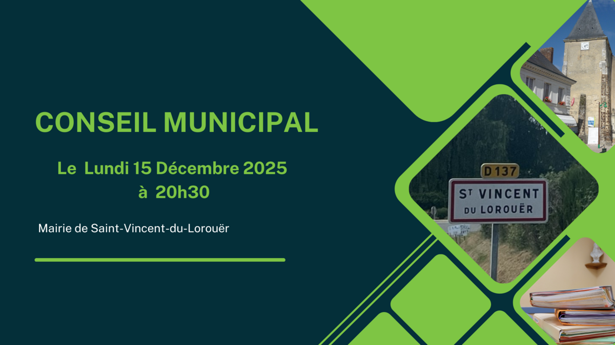 CONSEIL MUNICIPAL DU 15 DECEMBRE 2025 13/12/25 Conseil Municipal du Lundi 15 Décembre à 20h30 à la mairie. Source : Mairie de Saint-Vincent-du-Lorouër