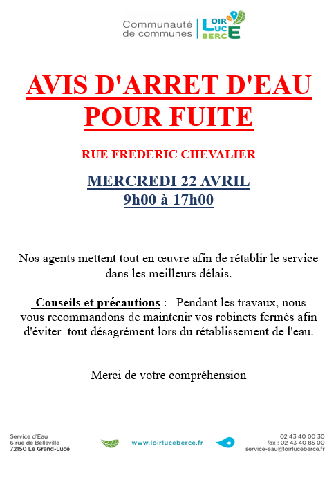 AVIS D'ARRET D'EAU