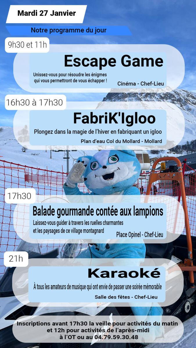 Bonjour, voici les animations prévues demain !