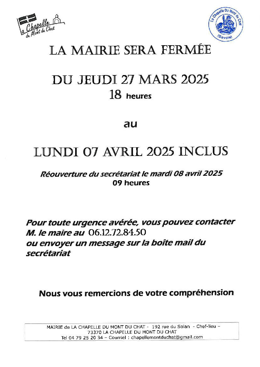 Toda la actualidad de Mairie de La Chapelle du Mont du Chat