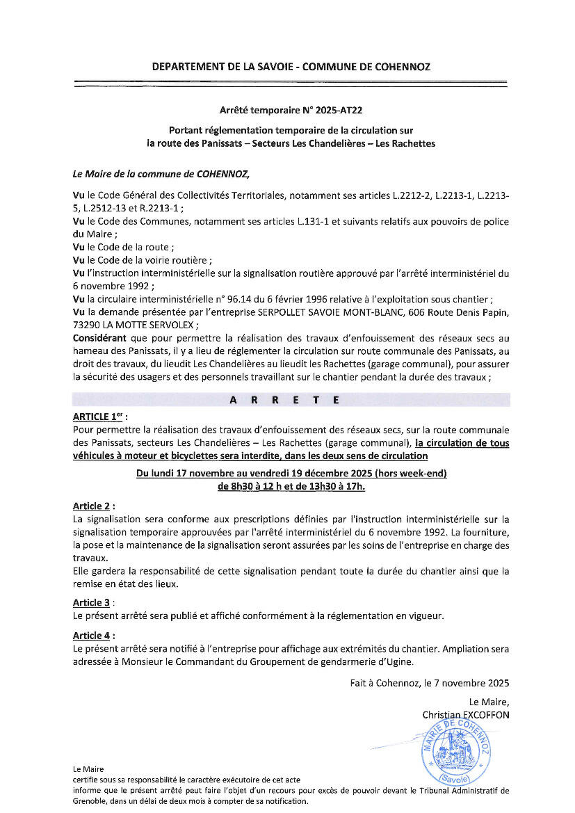 ⚠ RESTRICTION de CIRCULATION route des Panissats ⚠