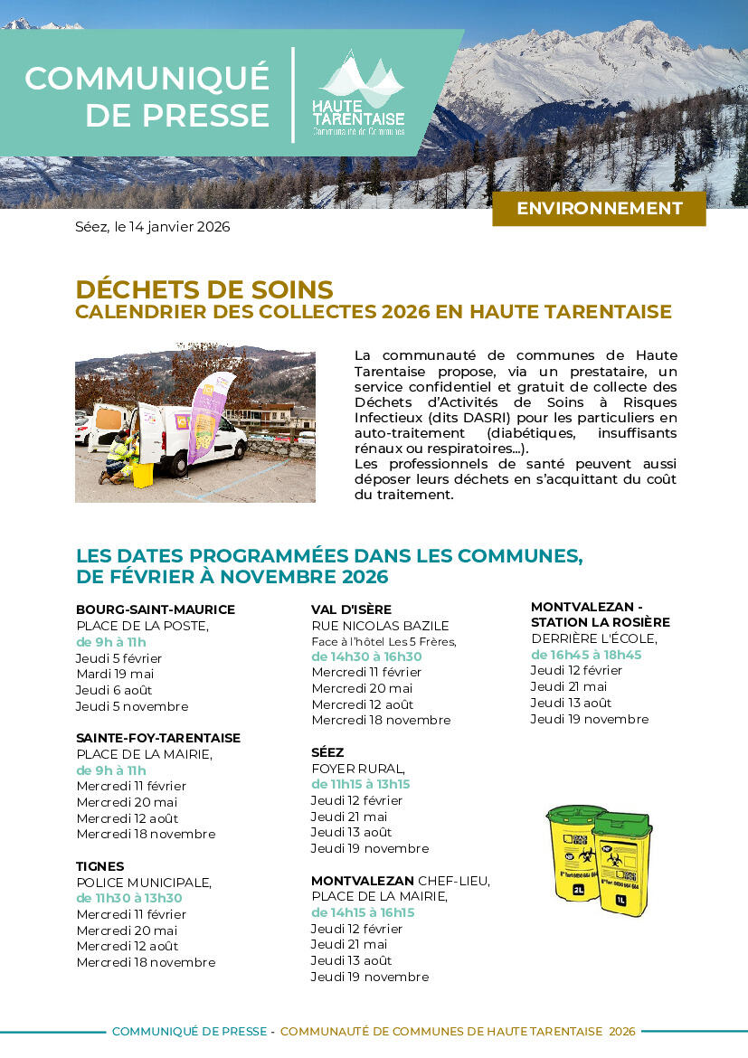 Collecte des déchets d'activités de soin et à risque infectieux, ce jeudi 12 février :Â