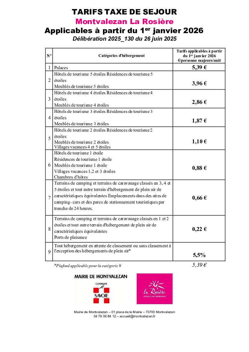 Depuis le 1er janvier 2026, les nouveaux tarifs de la Taxe de Séjour sont entrés en vigueur.