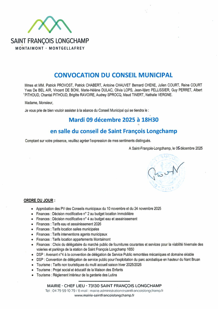 / Convocation au Conseil Municipal du 9 décembre