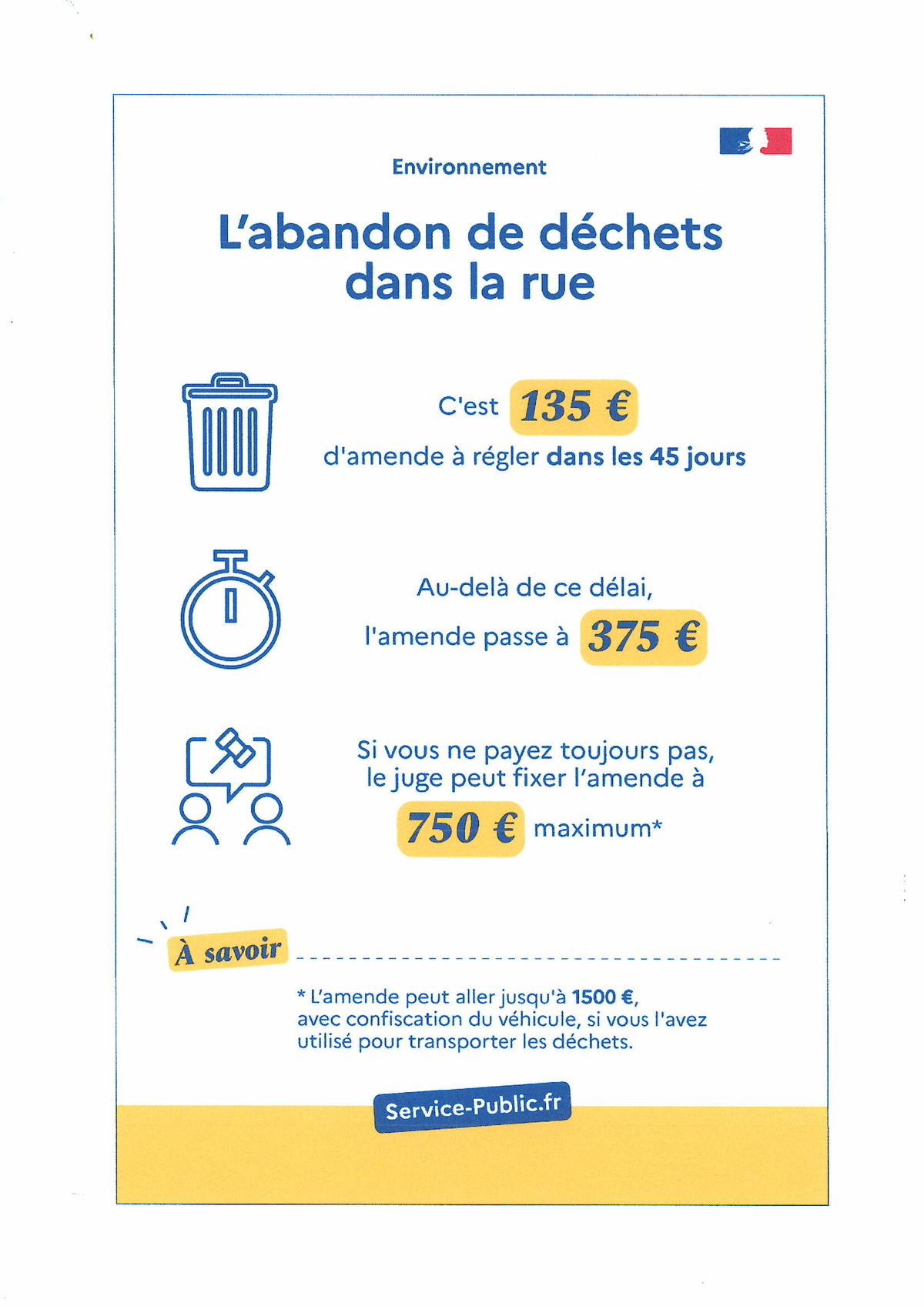 Rappel des "Amendes pour abandon de déchets dans la rue"
