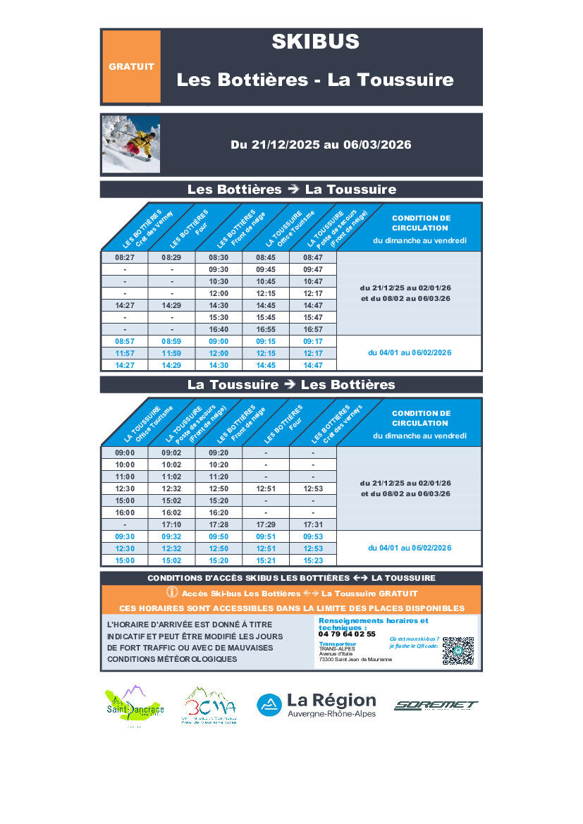 Horaires ligne S31bis et skibus les Bottières - la Toussuire