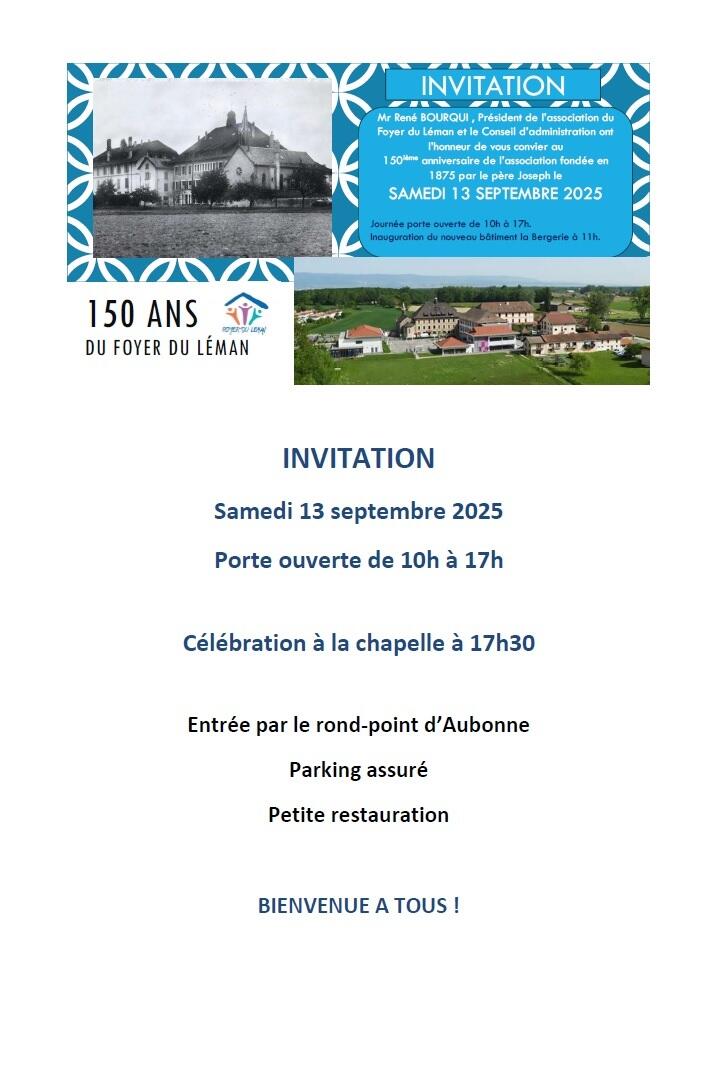Le Foyer du Léman célèbre ses 150 ans ! Venez partager cette journée exceptionnelle placée sous le signe de la mémoire, du renouveau et de la convivialité.