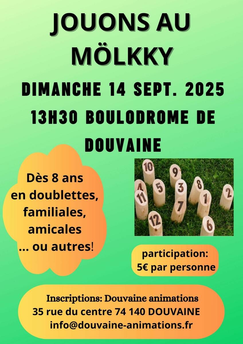Après le succès de la première édition, Douvaine Animations vous propose le 2ème après-midi Mölkky.