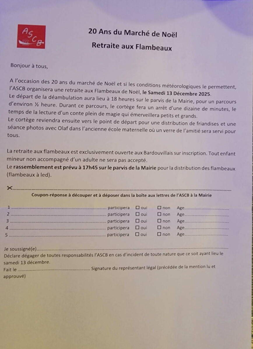 18h00 – Retraite aux flambeaux, ouverte à tous les Bardouvillais.