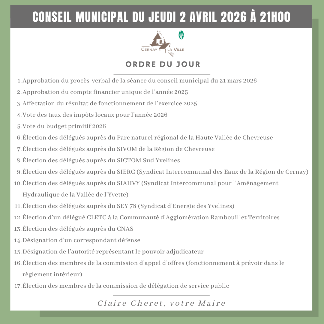 Veuillez trouver ci-joint l’ordre du jour pour le conseil municipal