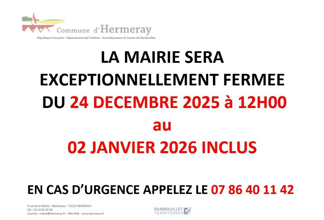 France Service Hermeray et St Hilarion fermés le 25 novembre