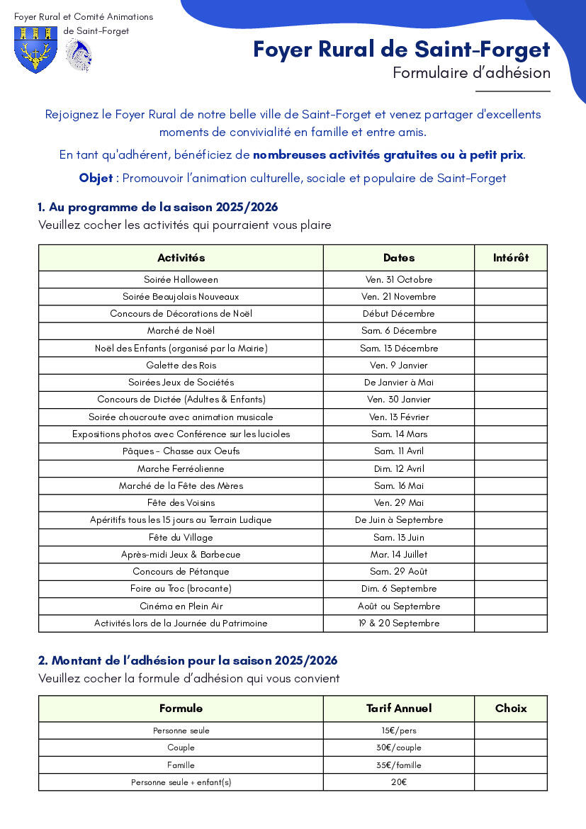 FOYER RURAL _ Départ du Président et Inscriptions 2025-2026
