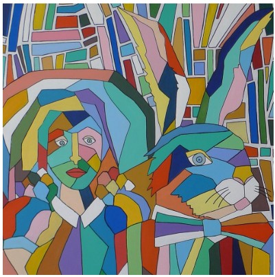 Depuis l’enfance, la peinture est pour moi un besoin vital, un langage intérieur. Parallèlement à mon métier de professeure d’arts plastiques, je développe une pratique artistique personnelle riche et sensible. Mes premières œuvres exploraient la mosaïque, avant que mes pinceaux ne se tournent vers les arbres de vie, les portraits, puis mes personnages emblématiques : les petits acrobates. Porteurs de lumière, de joie et d’espoir, ils incarnent l’humain dans toute sa fragilité et sa force.
