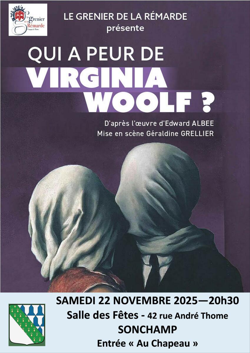 Théâtre à Sonchamp 30/10/25 Dans la salle des fêtes de SONCCHAMPQUI A PEUR DE VIRGINIA WOOLF?Ls samedi 22 novembre 20h30