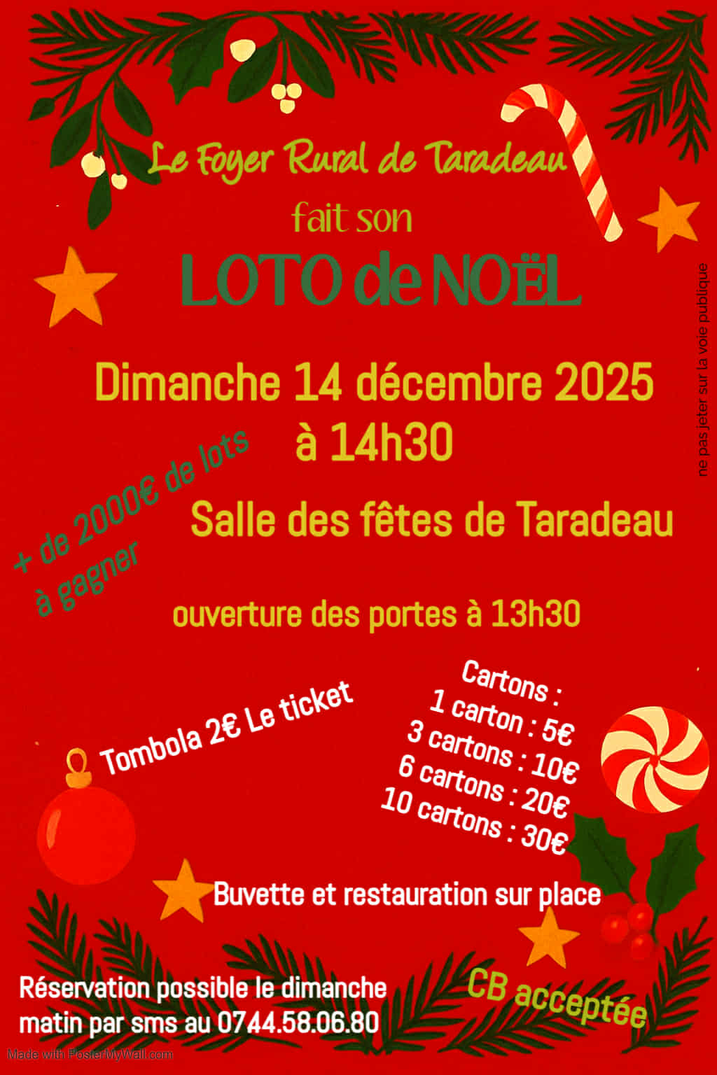 The post Loto de Noël du Foyer Rural le 14 décembre first appeared on Mairie de Taradeau.