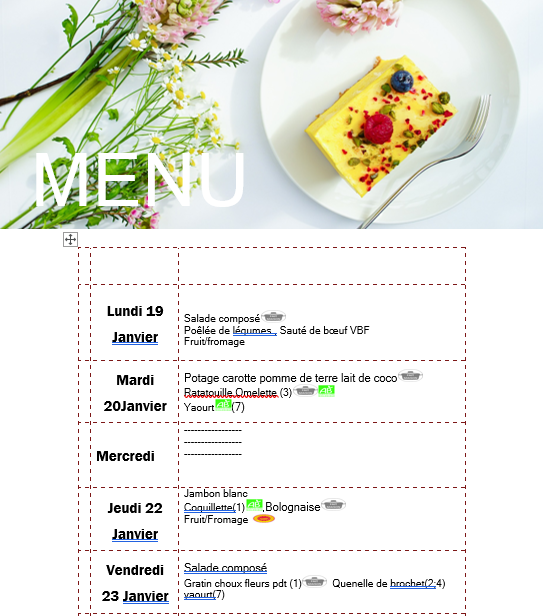 Su ayuntamiento / Noticias / Menus de la cantine scolaire du 19 au 23 janvier