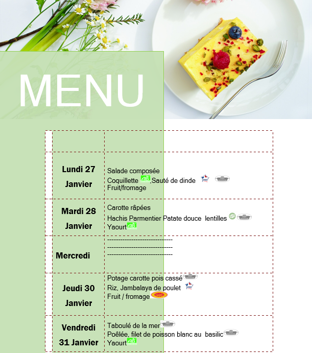 / Menus de la cantine scolaire du 27 janvier 2025