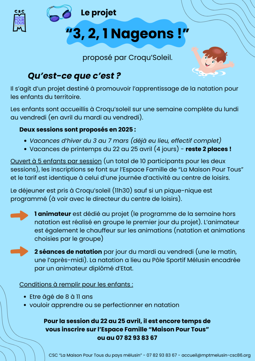 Le Projet 3, 2, 1 Nageons avec la Maison pour Tous