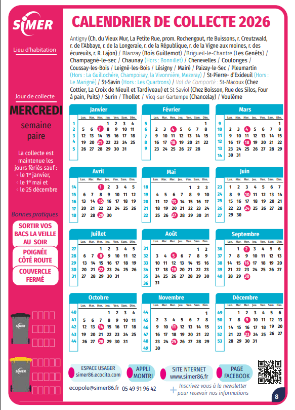 / SIMER calendrier collecte 2026