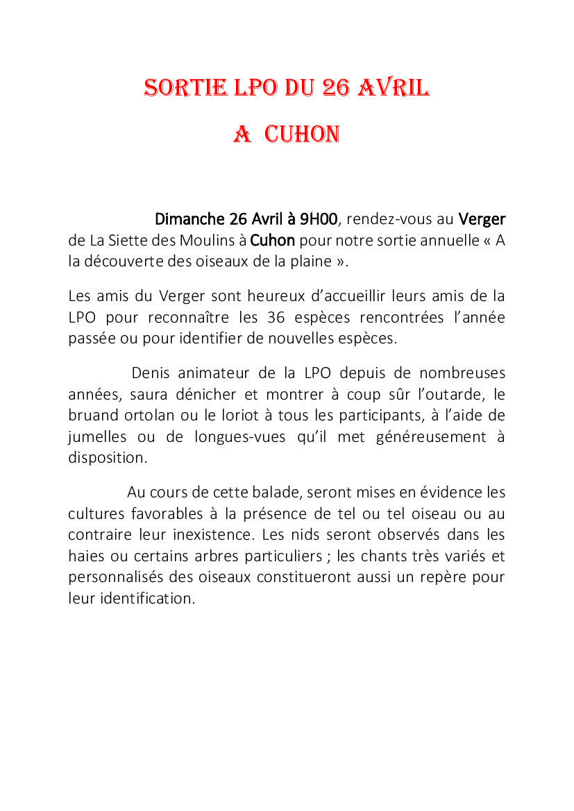 Sortie ornithologique LPO / Amis du Vergers